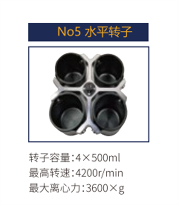 No5 | 水平轉(zhuǎn)子 | 4X 500ml | 4200 r/min | 3600xg |