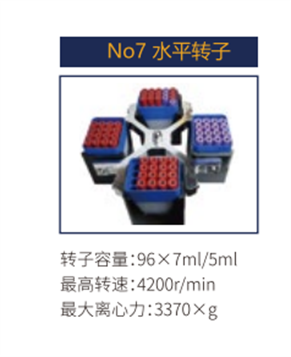 No7 | 水平轉(zhuǎn)子 | 96X7ml/5ml | 4200 r/min | 3370xg |