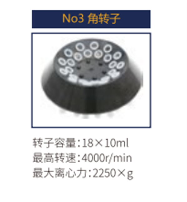 No3 | 角轉子 | 18X 10ml | 4000 r/min | 2250Xg |
